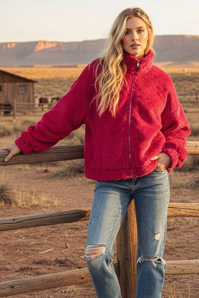 Stay warm and stylish in this plush quilted faux fur jacket. Designed with a high neckline, front zipper closure, and side pockets for functionality, this piece combines luxurious softness with a modern oversized fit. The quilted texture adds a touch of sophistication, making it perfect for layering on chilly days or adding cozy flair to your everyday look.faux fur jacket, quilted jacket, zip-up coat, cozy outerwear, plush jacket, soft fur, oversized fit, winter style, warm zip jacket, casual outerwear, chic cozy jacket, textured coat, fall winter essential
