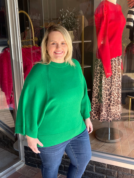 Drop shoulder soft comfy sweater top, wide sleeves.